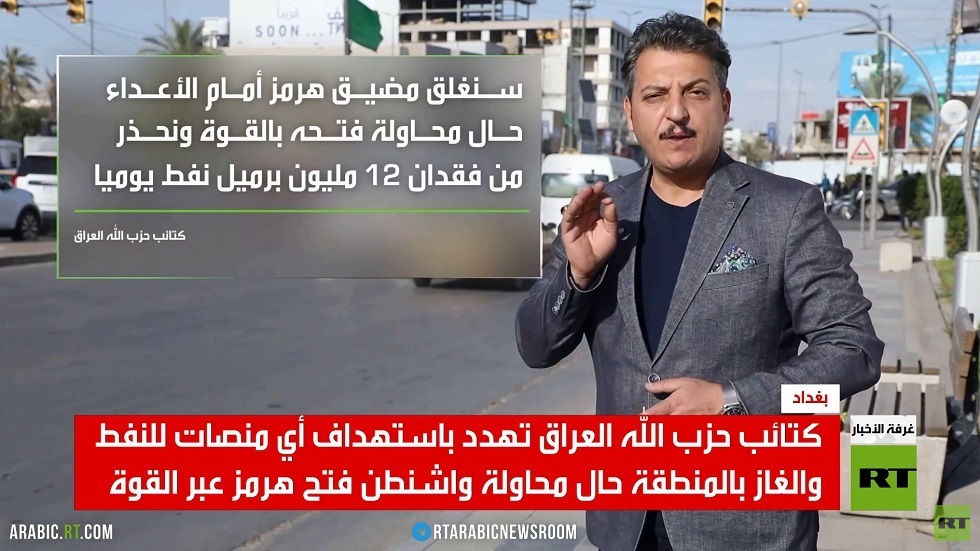 أكدت كتائب حزب الله العراق أنها ستستهدف أي منصات للنفط أو الغاز بالمنطقة، حال استخدام القوة لفتح مضيق هرمز، وأوضحت الكتائب أن المضيق لن يفتح أمام الأعداء.